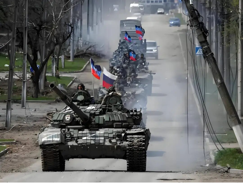 俄罗斯坦克赶赴前线。