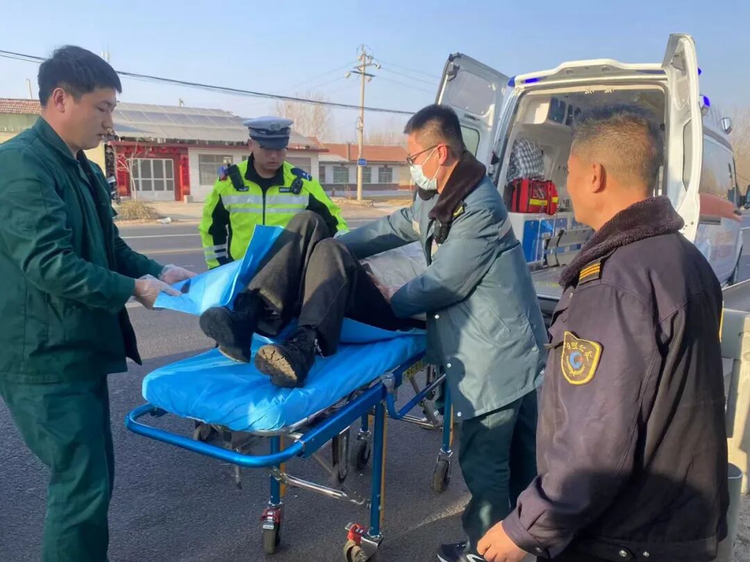 2月20日下午,东港区大队陈疃中队执勤人员巡逻途中发现,一名男子在一起交通事故中受伤,马上协助医护人员救助伤者,同时对过往车辆进行指挥疏导,确保道路安全畅通。