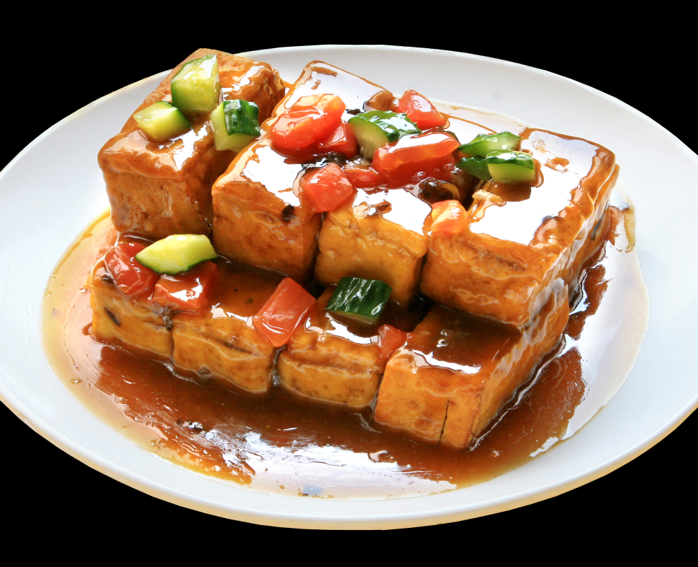豆腐箱是淄博最具代表性的一种传统美食,从康熙年间至今已有三百多年的历史,方方正正的豆腐被整齐的摆放在盘子里,挂着由高汤勾芡而成的浇头,精美细致,金黄诱人。品尝时,轻轻掀开豆腐盖,里面是满满的内馅儿,有一种“开箱取宝”的惊喜感。
