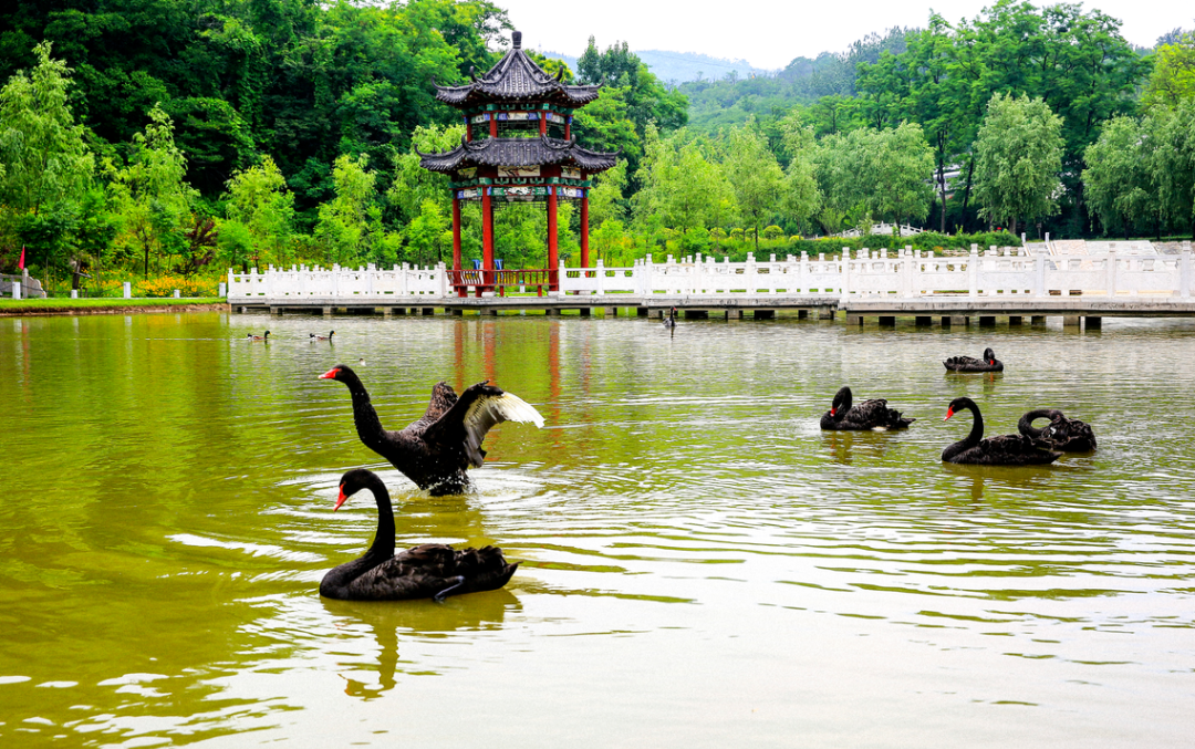 湖面如镜映新春,山泉叮咚伴喜乐。漫步湖畔,看黑白天鹅、鸳鸯在水中嬉戏,看两岸绿植覆雪凝霜,层林尽染间藏着冬日独有的诗意。
