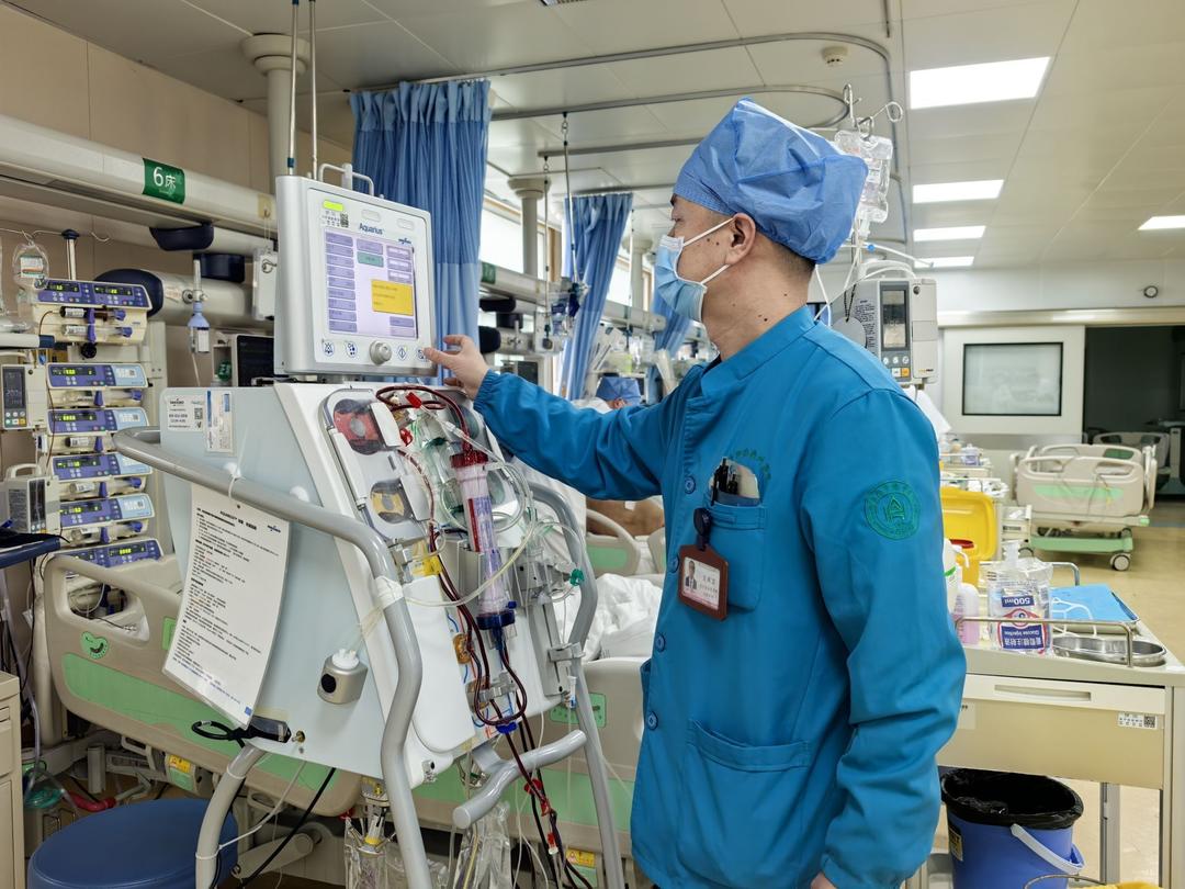 41岁的他,从事急危重症护理工作近20年。今年初一,又轮到他值班。 “血滤机报警了……” 年轻护士迎上来求助。王风卫快步走到床旁,俯身查看管路,手指熟练地在操作面板滑动。经过调试,报警解除。这里刚结束,那边又有人喊:“鼻肠管置入困难,您来看看吧。”他转身又朝另一张病床走去。