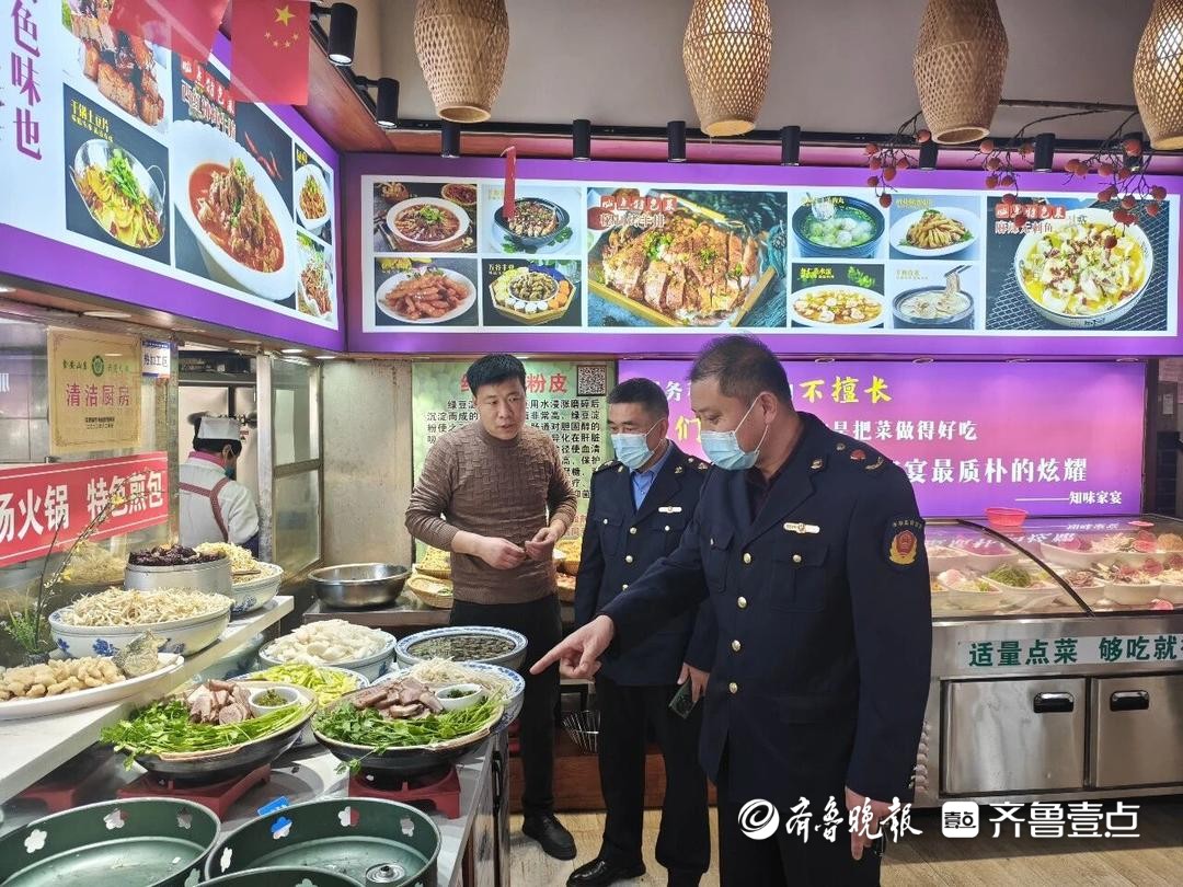 春节期间,在万家团圆之时,市场监管局执法人员坚守一线,对商超、农贸市场、餐饮单位、高速服务区、年货经营点等进行全面检查,守护群众“舌尖上的安全”。特别是辖区内承接年夜饭的餐饮服务单位,是监管的重中之重,执法人员围绕年夜饭供餐全流程,聚焦餐饮单位资质、从业人员健康管理、食材进货查验与索证索票、凉菜制作、食品留样、餐具清洗消毒、后厨环境卫生、“三防”设施等关键环节,严查使用过期变质食材、交叉污染、操作不规范、食品添加剂违规使用等问题,并同步督促落实反食品浪费要求,倡导“光盘行动”,践行文明用餐新风。执法人员坚持“边检查、边指导、边整改”,现场指出问题、提出整改要求,督促餐饮单位严格履行食品安全第一责任人责任,全面开展自查自纠,确保年夜饭吃得安全、吃得放心。