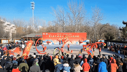 这里有秧歌舞龙等民俗文艺展演