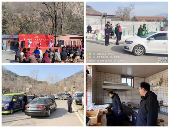 织密民生“保障网”,撑起民生“幸福伞”。派出所、乡村综治中心以“时时放心不下”的责任感,统筹推进春节期间风险隐患排查整治、社会面巡逻防控等各项工作,全力维护社会安全稳定;行政执法大队、市场监管所每天对辖区进行安全巡查,强化统筹调度,遇到各类突发情况做到及时报备并依法妥善处理;泰山文旅集团从2月17日到2月22日,每天在大津口乡辖区内开展“送戏下乡”惠民演出活动,持续提升公共文化服务质量。