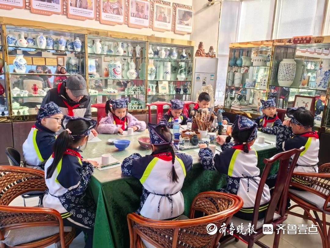 走进叶建明陶瓷馆,清脆的童声与瓷器的碰撞交织成别样的新春乐章。山东工艺美术大师叶建明正带着一群小朋友穿越千年陶瓷史,从龙山文化的古朴厚重,到明清瓷器的精致典雅,孩子们听得不亦乐乎。最受欢迎的画瓷体验环节,孩子们以瓷为纸、以釉为墨,在素坯上描绘心中的春天。红灯笼、小福字跃然“瓷”上,一件件独一无二的作品成为献给春节最特别的礼物。“从城区专程带孩子来,这里既能感受传统文化,又能亲手体验,比宅在家里有意思多了。”游客李女士举着女儿刚完成的瓷盘,满脸自豪。