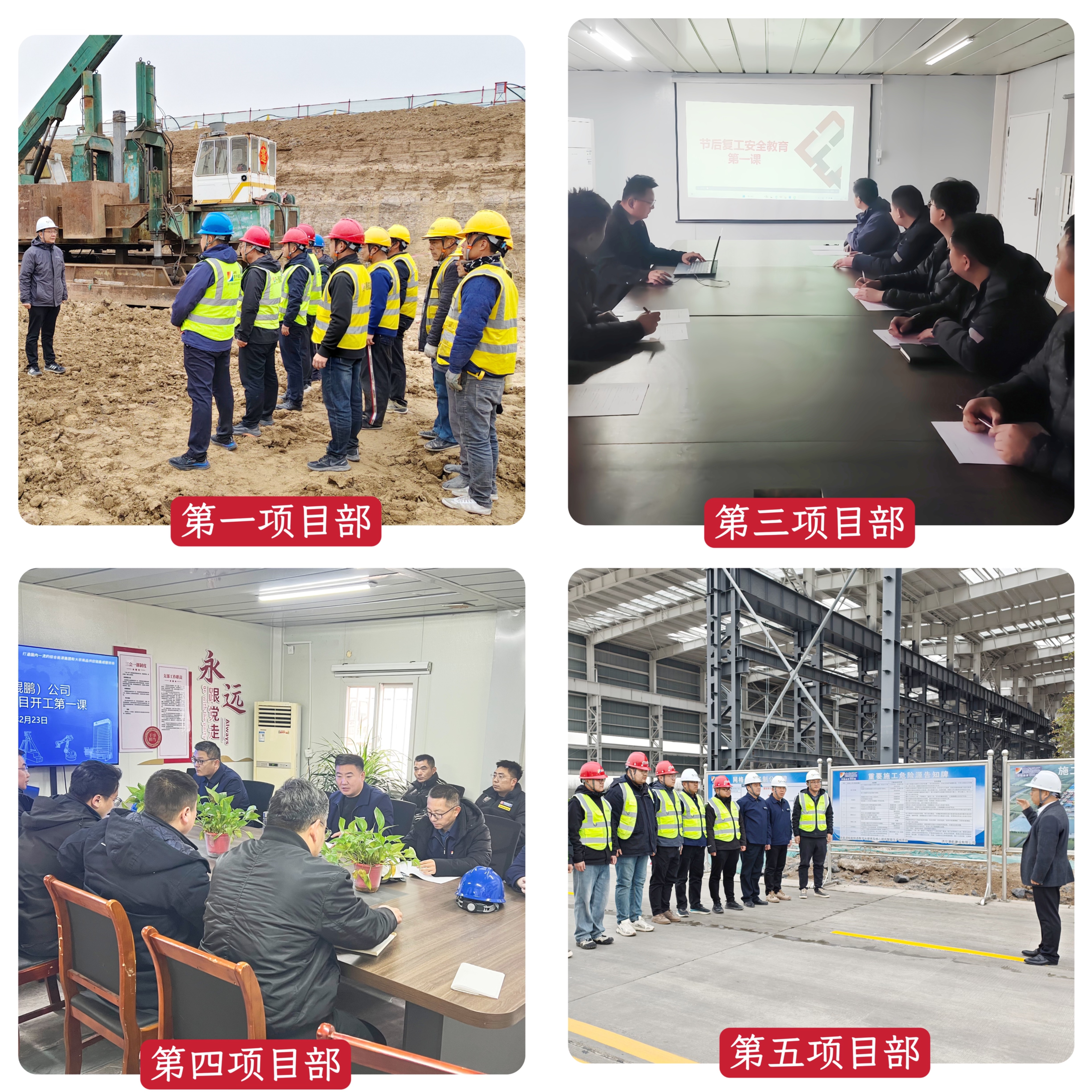 各项目部迅速响应、狠抓落实,严格按照公司统一部署,全面开展工前安全隐患排查整治,细致复核人员到岗、设备进场、现场管控等关键环节,认真组织全员重温 “开工第一课” 精神,把安全责任落实到每一个岗位、每一道工序、每一名人员。全体员工以 “开工即冲刺、起步即严管” 的姿态,严守安全规程、强化风险防控,以扎实细致的现场管理和务实担当的工作作风,确保项目生产安全、有序、高效启动,为圆满完成全年目标任务打下坚实基础。