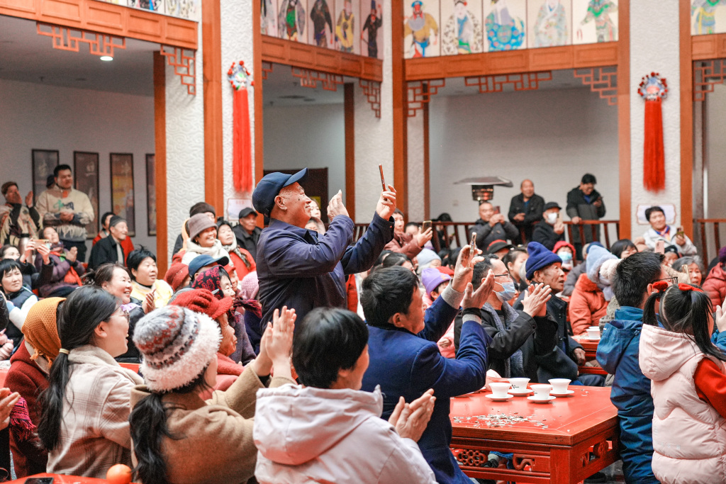 上午9:30,作为重头戏的“姥姥门前唱大戏”梨园迎春活动在得胜楼大戏院迎来收官演出。场内座无虚席,新区、诸城茂腔剧团的专业演员与海小青艺术团基层文艺骨干同台献艺。茂腔《西京》《火龙记》《钥匙记》等经典选段轮番登场,熟悉的乡音乡韵引得老戏迷们跟着轻声哼唱,连连叫好。一出清丽动人的黄梅戏《女驸马》选段,更为这场传统戏曲盛宴增添了一丝江南柔情,赢得了不同年龄层观众的掌声。