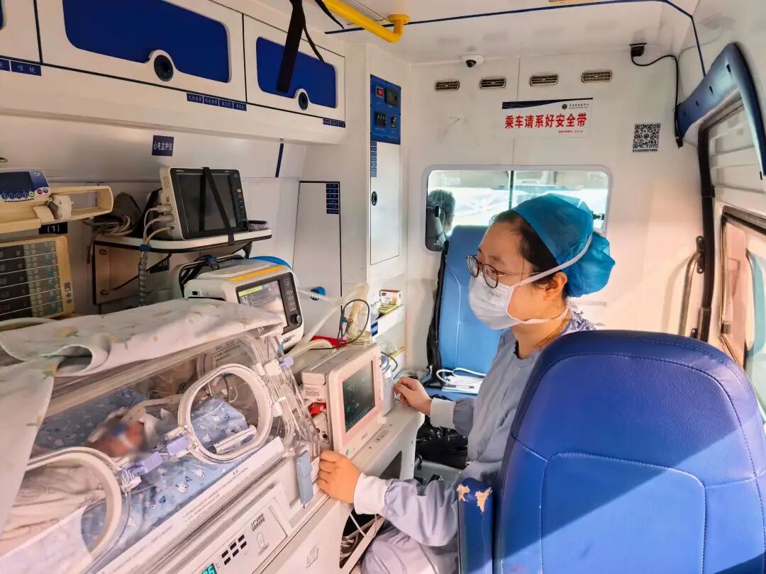 新生儿科充分发挥省级危重新生儿救治中心作用,为每个新生命保驾护航。市南病区春节期间床位使用率达95%以上,开展有创机械通气3例、无创通气8例,全力救治包括25周双胞胎、严重支气管肺发育不良、坏死性小肠结肠炎等多名危重新生儿,并成功为体重仅740g的早产儿实施PICC置管。一名外院胎龄33周胎膜早破的孕妇需实施剖宫产手术,为保障母婴安全,当地医院联系新生儿科团队进入手术室陪产,待新生儿出生后转运至市南病区。接到转运任务后,儿童医学中心主任姜红带领团队迅速响应,医护人员提前到达当地医院手术室,经暖箱顺利完成转运。