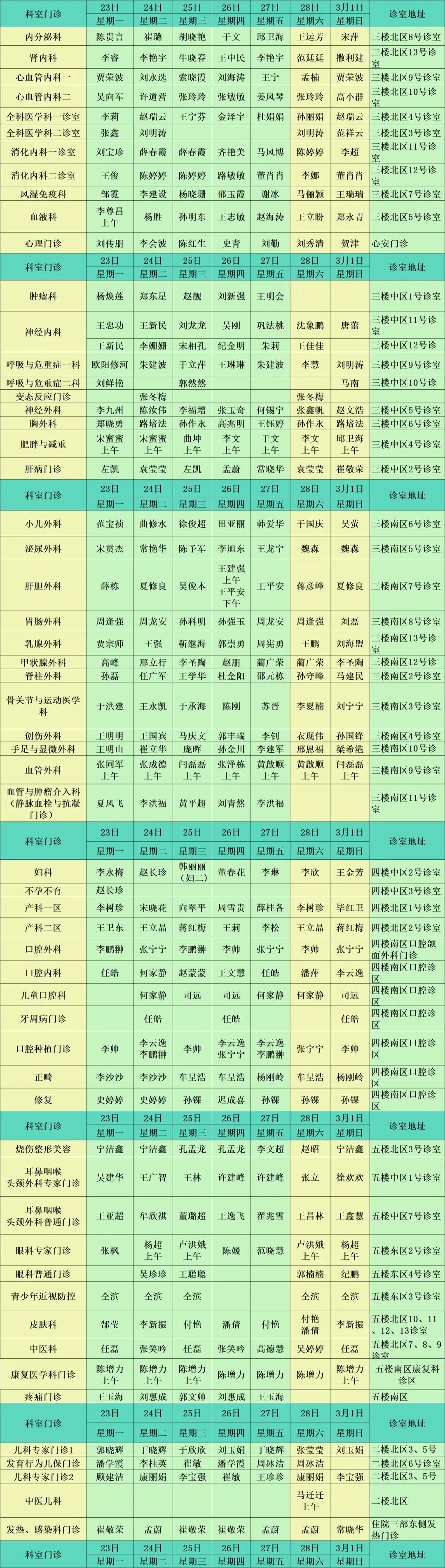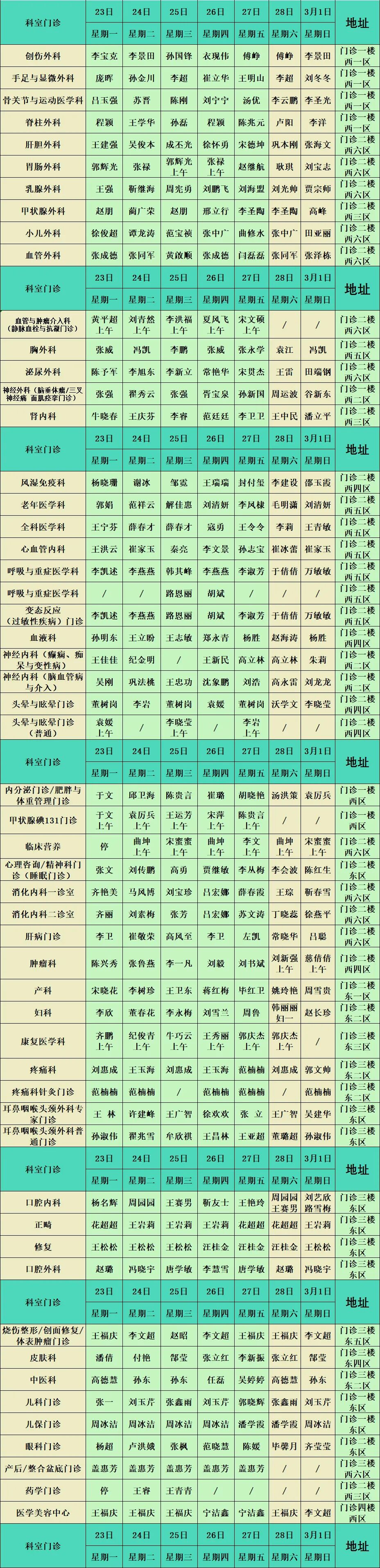 医心守护:滨州市人民医院2月23日-3月1日门诊医生值班表