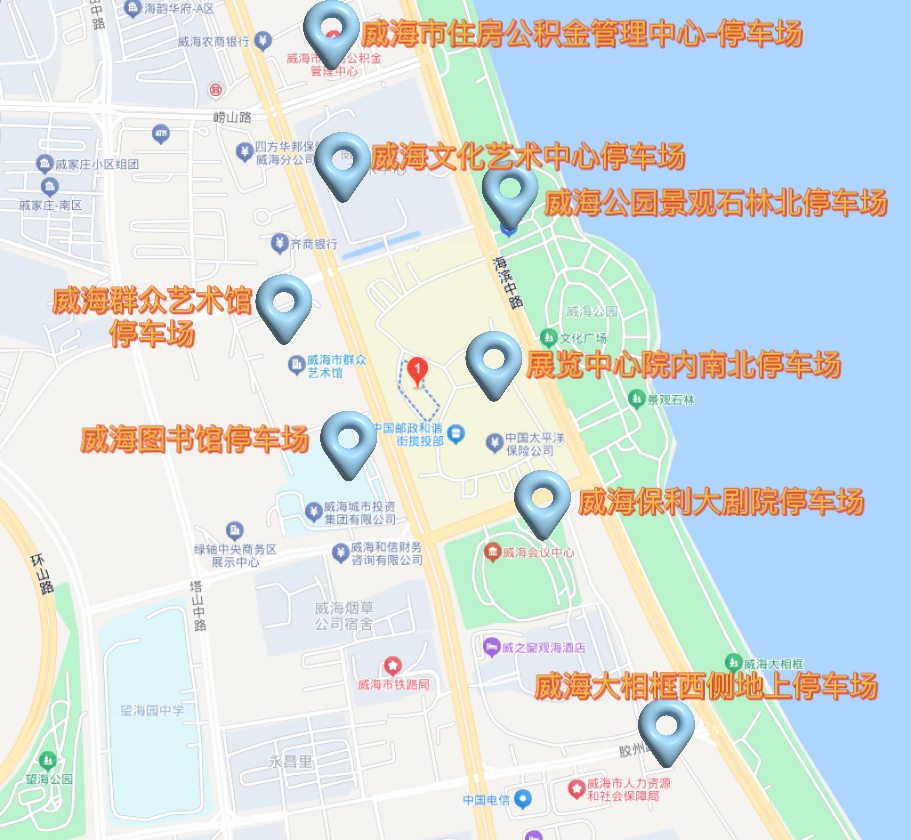停车攻略:为避免招聘会当天人车拥堵,提前绘制了会场周边停车场地图,自驾参会的小伙伴们当天要注意分散停车。乘坐公交车参会的小伙伴们可选择1路、10路、12路、21路、33路、41路等,在国际展览中心(威海市图书馆)站下车,步行至威海国际展览中心C馆参会。