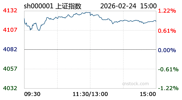 AI小壹2月24日讯 沪市小幅上涨,最高触及4131.55点,最低下探4105.94点,振幅0.87%。截至今日15:00收盘,上证指数报4117.41点,涨幅0.87%,成交额9386.11亿元,成交量5.66亿;深证成指报14291.57点,最高14376.96点,最低14214.41点,涨幅1.36%,成交额1.26千亿元,成交量7.12亿;创业板报3308.26点,最高3343.24点,最低3292.5点,涨幅0.99%,成交额5970.04亿元,成交量2.28亿。