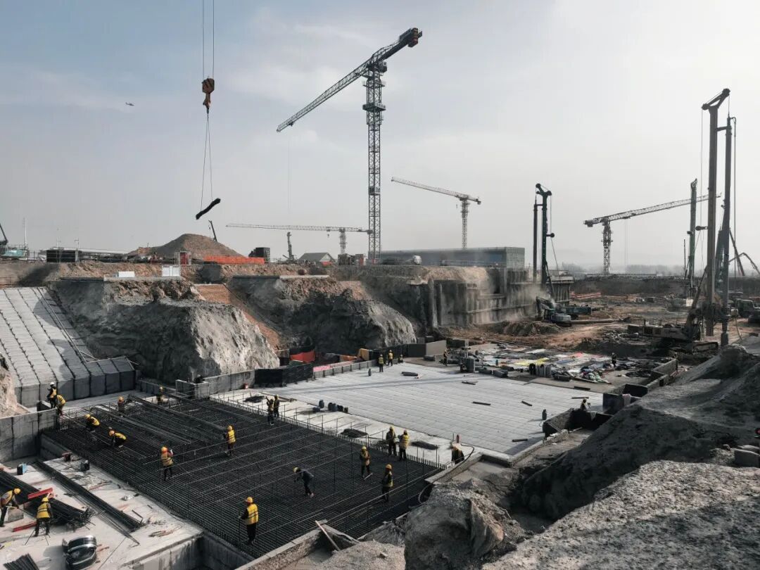 走进施工现场,工人们头戴安全帽、身着工作服,在各自岗位上紧张忙碌。绑扎钢筋、浇筑混凝土,每一道工序都有条不紊地推进。寒风挡不住建设的热情,年味里多了一份奋斗的底色。