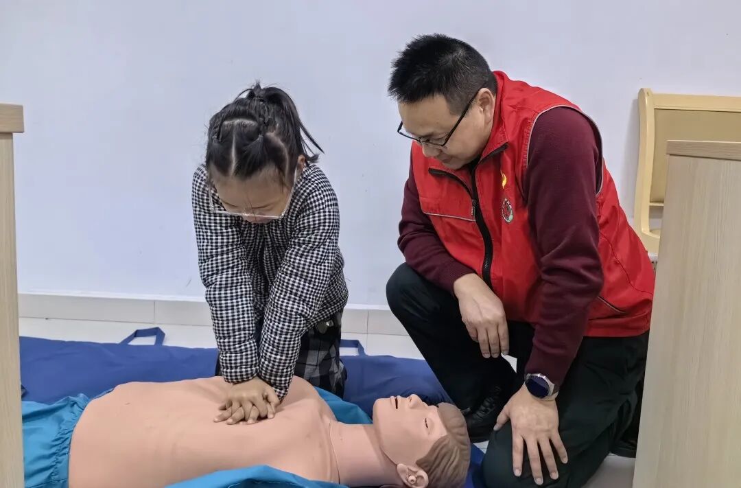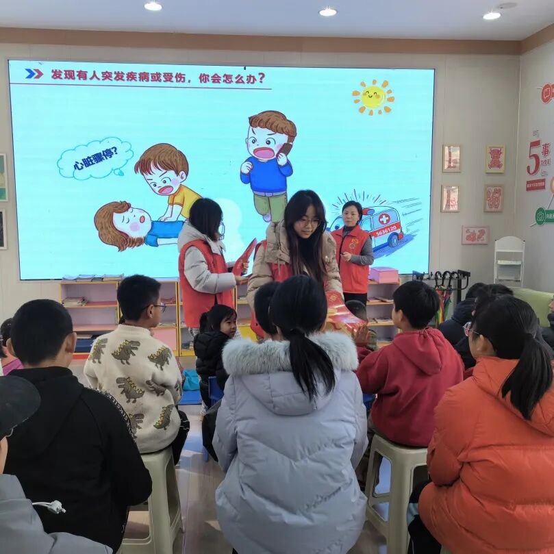 聚焦儿童青少年急救素养提升,2 月 5 日下午,志愿服务队再次走进八仙社区,为 30 余名寒假托管班的孩子开展心肺复苏术急救技能专项培训。