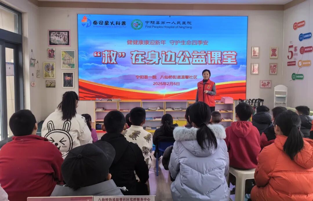 新春将至,暖意融融。为弘扬家庭健康文化、提升全民健康素养与自救互救能力,宁阳县一院健康 365 志愿服务队紧跟县文明办 2026 年文化社区课程安排,于近日接连走进八仙社区、温馨社区开展系列健康科普与急救技能培训活动,将专业的医疗知识、实用的急救技能和满满的新春祝福送到居民与孩子们身边。