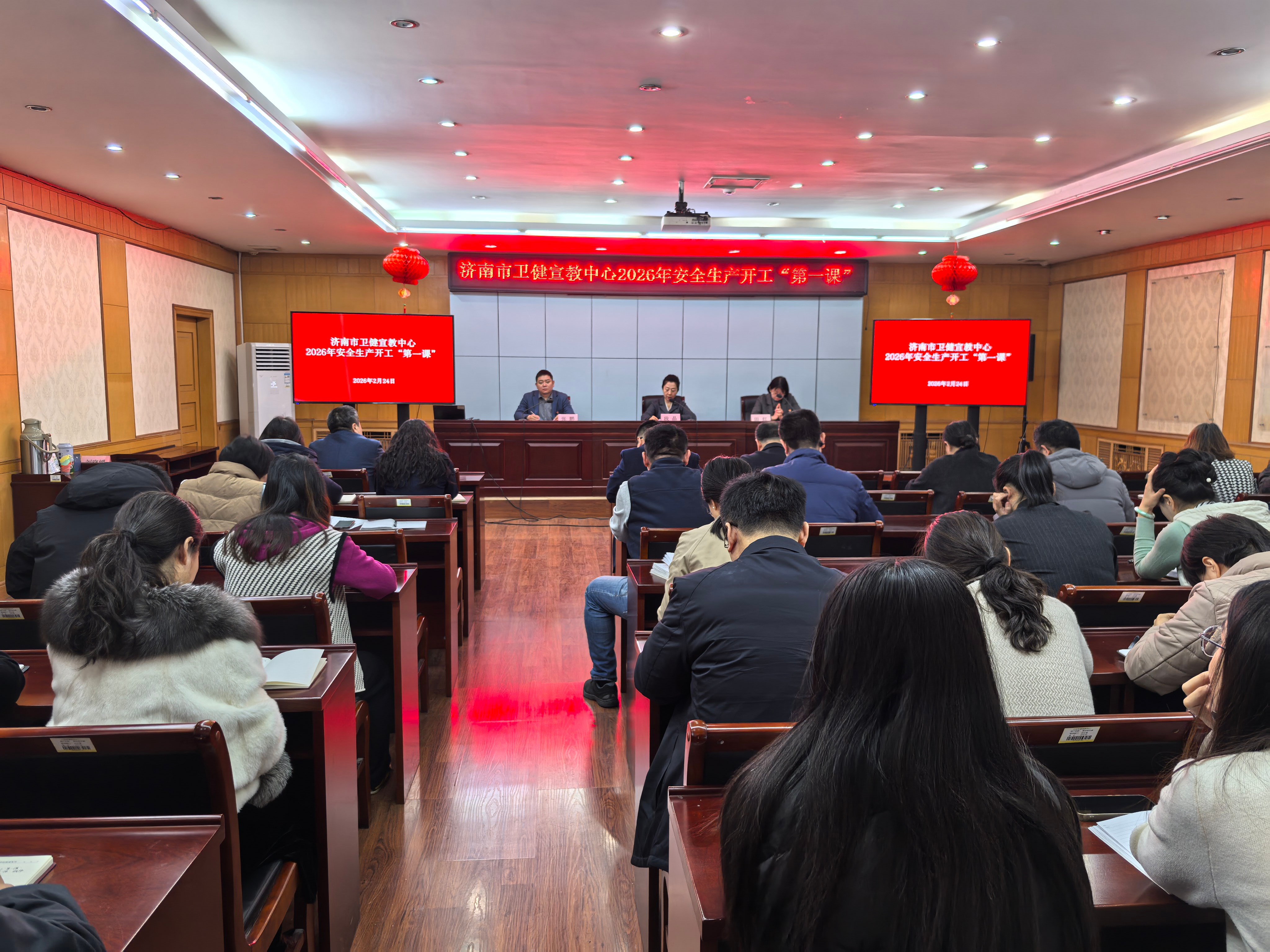 2月24日开工首日,济南市卫生健康宣传教育中心组织开展安全生产开工“第一课”培训活动,中心全体干部职工参加培训学习。