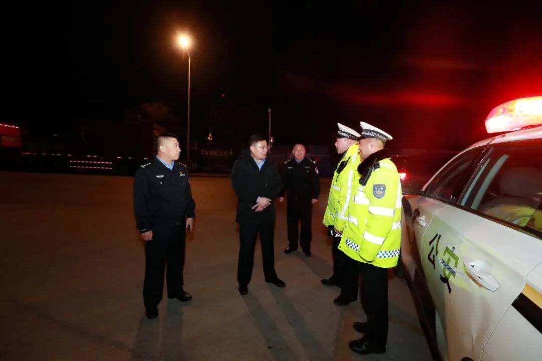 ▲除夕夜,副市长、市公安局党委书记、局长于述东深入执勤点位,看望慰问坚守岗位的民警辅警,督导检查节日期间安保工作。