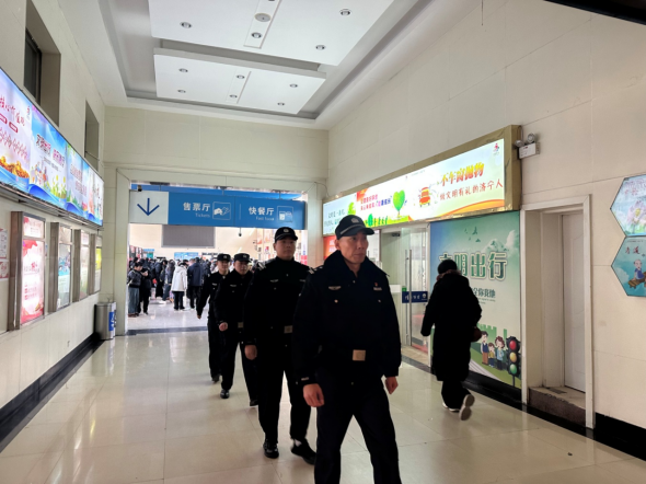 “一看到街上闪烁的警灯,心里觉得特别踏实。”这个春节,不少外出居民道出了自己的心声。在济宁汽车总站大厅内,运河派出所民辅警开展例行的步行巡逻,密切关注周围的一举一动,让旅客感到了一股股暖意,成为一道亮丽的风景线。