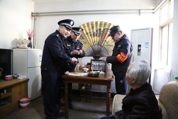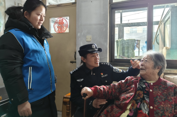 “大姨,身体恢复的可以吧,有事找我、找网格员。”在济宁市任城区古槐街道县前街居民梁老太家中,渔山派出所民警带领辅警、警务助理、网格员、医护组成的“渔舟枫火”志愿服务队开展“‘四送’进家门,欢乐迎新春”活动。民警拉着老人的手嘘寒问暖,叮嘱老人日常注意事项,组织队员们为老人量血压、包水饺、擦玻璃、打扫卫生,现场气氛幸福欢快。“平时俺母亲也经常说,咱民警包括社区都很关心,心里很温暖,就是很放心!” 老人从外地赶回家的女儿高兴地说道。