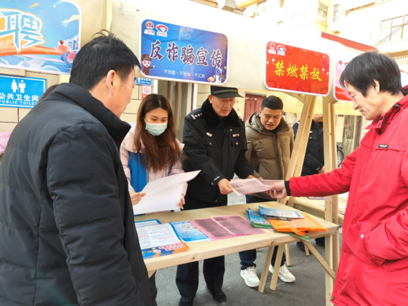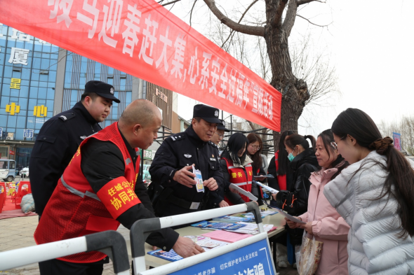“反诈集市开张啦,大家快来围观!”“钱包手机要看好,电诈套路要分清。”……在安居街道胡营大集上,安居派出所民警在“平安摊位”前忙碌着。现场“骏马迎春赶大集,心系安全过福年”的宣传横幅格外醒目。