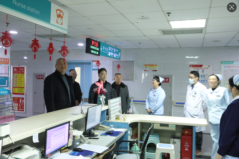 “新年快乐!”“大家辛苦了!”慰问现场暖意融融、情意浓厚。院领导班子一行先后走访了各临床科室、医技科室、服务窗口等岗位,与坚守在工作一线的医务人员亲切握手、促膝交谈,详细询问春节期间值班值守安排、患者诊疗救治情况以及职工工作生活状态,倾听大家的心声、了解大家的需求。对全体医务人员在新春佳节这个万家团圆的特殊时刻,舍小家、为大家,毅然坚守医疗岗位、践行医者使命,用坚守与奉献守护群众生命健康的责任担当,给予高度肯定和衷心感谢。同时,叮嘱各科室春节期间要更加认真负责,加强巡视,确保医疗质量和医疗安全。
