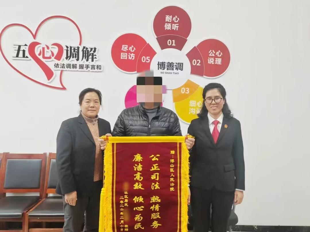 一面锦旗,承载着群众的认可;一份心意,彰显着司法的温度。这不仅是对法院调解工作的充分肯定,更是对司法为民初心的生动诠释,也是淄博市博山区人民法院践行新时代“枫桥经验”,用心用情解决群众急难愁盼问题的真实写照。