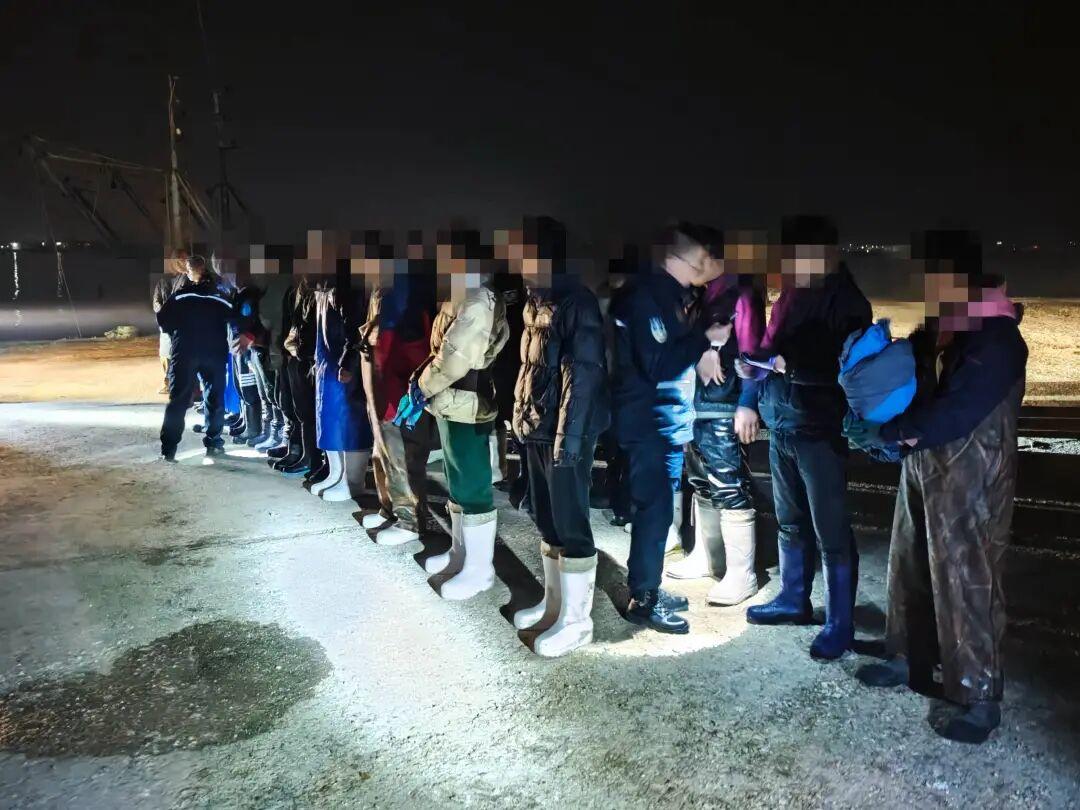 2月21日21时许,烟台海警局根据情报线索,联合烟台公安、边检等部门在烟台海阳某码头开展查缉行动,成功查获1艘涉嫌走私海产品的散货船,当场抓获犯罪嫌疑人27人,查扣无合法来源鲜活海产品100余吨及箱式货车2台,有力打击了海上走私违法犯罪活动,切实守护辖区海域安全稳定与人民群众食品安全。