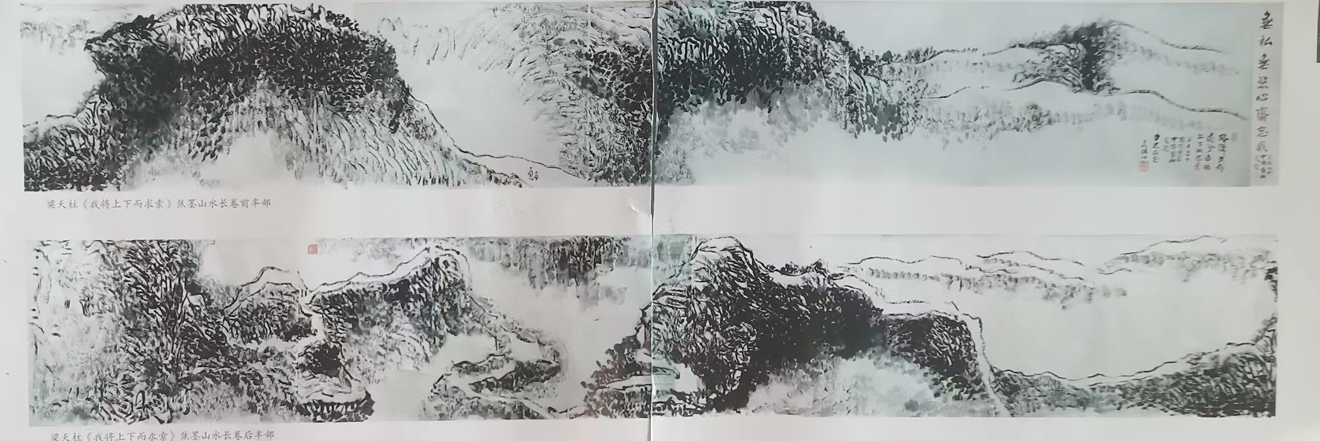 梁天柱先生无论画数十米的巨幛,还是半尺的小品,从不打稿,提笔就画,一气呵成。如果摆上几十幅他的作品,把题款印章遮盖起来,观览众画大开大合,笔墨各异,反差之大,精彩纷呈,你会认为这是几十位名家的作品。梁天柱先生气势恢宏的28平尺山水画长卷,令人百看不厌。