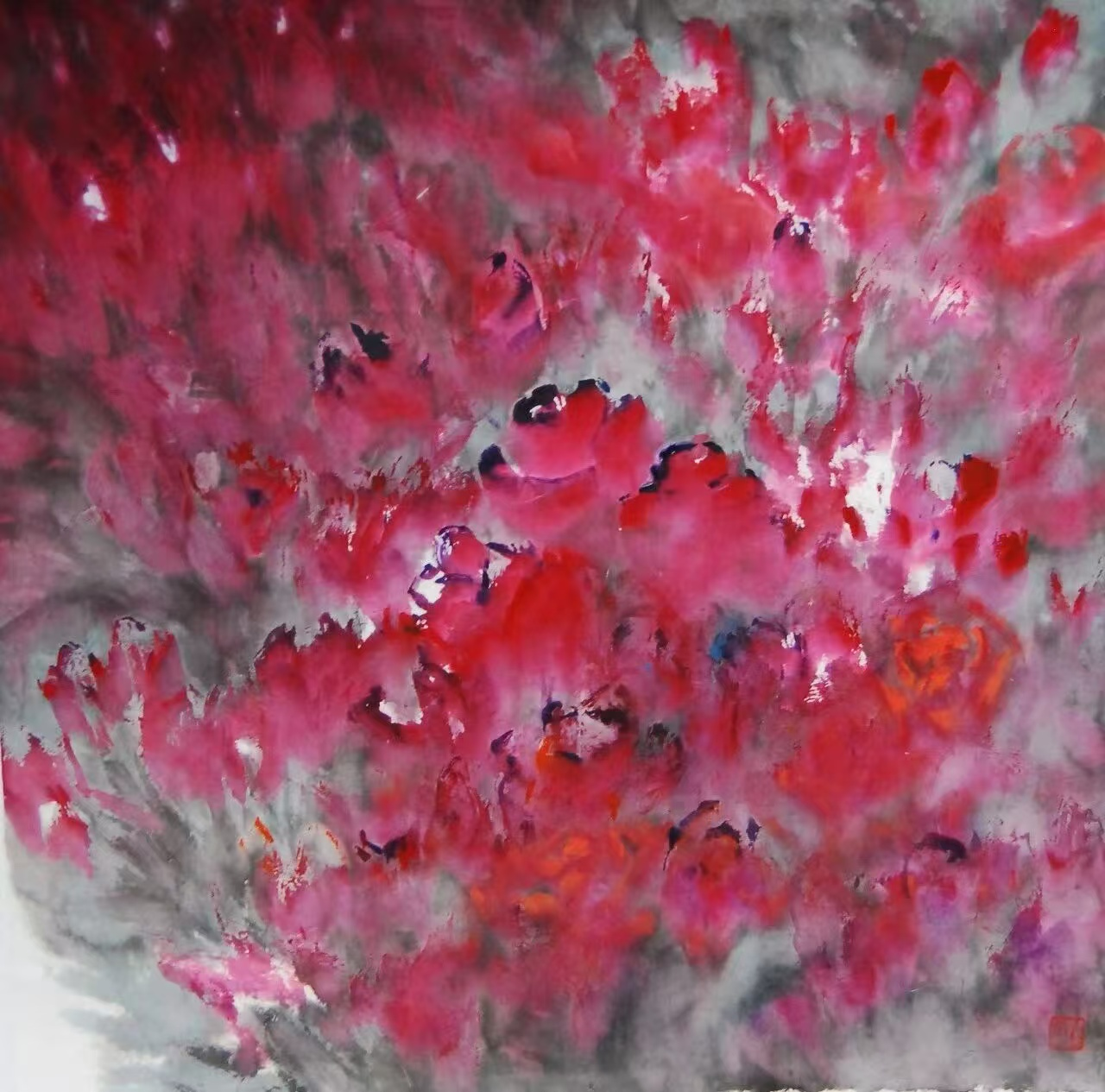 梁凌娟选择了十多幅得意之作参加《艺术家宴》,仔细品味她的《枫林晨钟》《花呓》《雨林谷》《生如夏花》等传神佳作,领略了画风激情奔放,笔墨五彩斑斓,意境如梦如幻,真是无声胜有声,美丽的画作会唱歌。