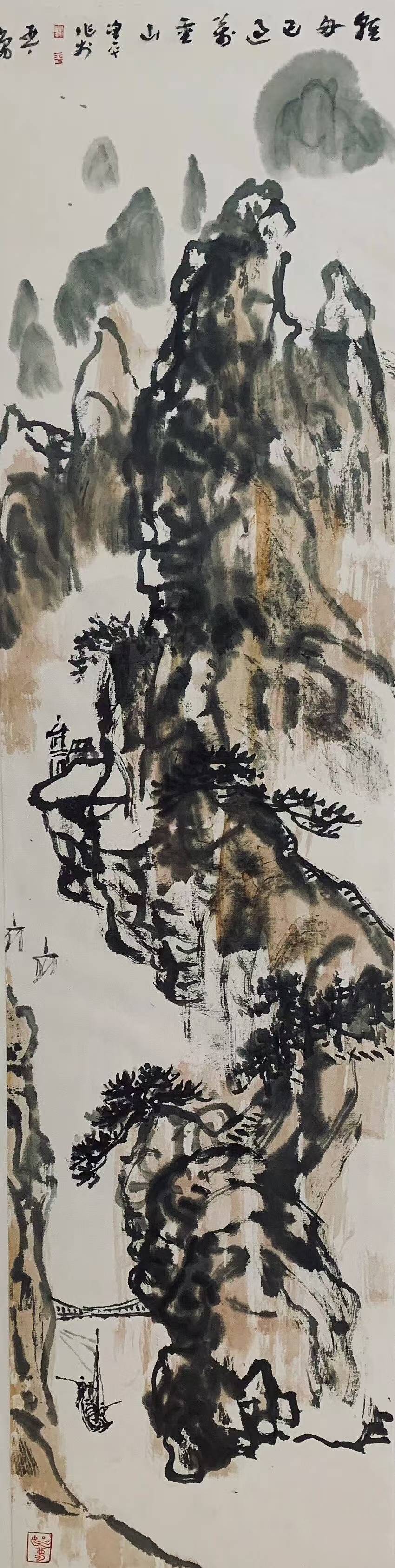 品味梁浩的山水画,具有梁天柱的真传。大气磅礴,大开大阖,作品融入了自己的感悟与激情笔墨技巧,融进了天性和意趣,因意成像,以象达意。从外貌上看,梁浩文质彬彬,从言谈上看,梁浩从不张扬。可是一画起画来,他就像换了一个人,好似草原上脱缰的野马,任凭在画中驰骋。他的山水画,随心所欲、游刃有余,水墨烟痕,无非心象,直取性情,为文为画,尽在其中。