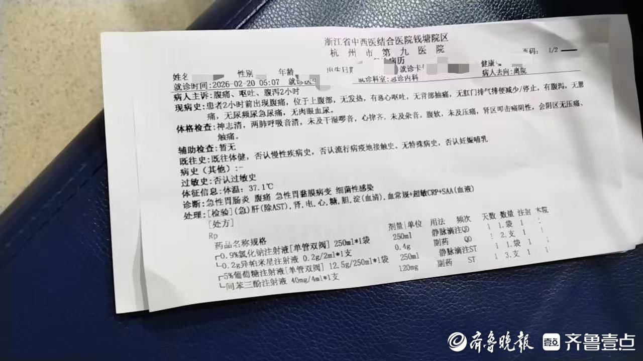 2月24日,杭州萧山市民郝先生向齐鲁晚报·齐鲁壹点记者反映,春节假期返程途中,一行人在高速服务区食用兰州拉面后,多人出现腹痛、呕吐、腹泻等症状,医院诊断为集体性细菌性急性肠胃炎,目前相关部门已介入调查。