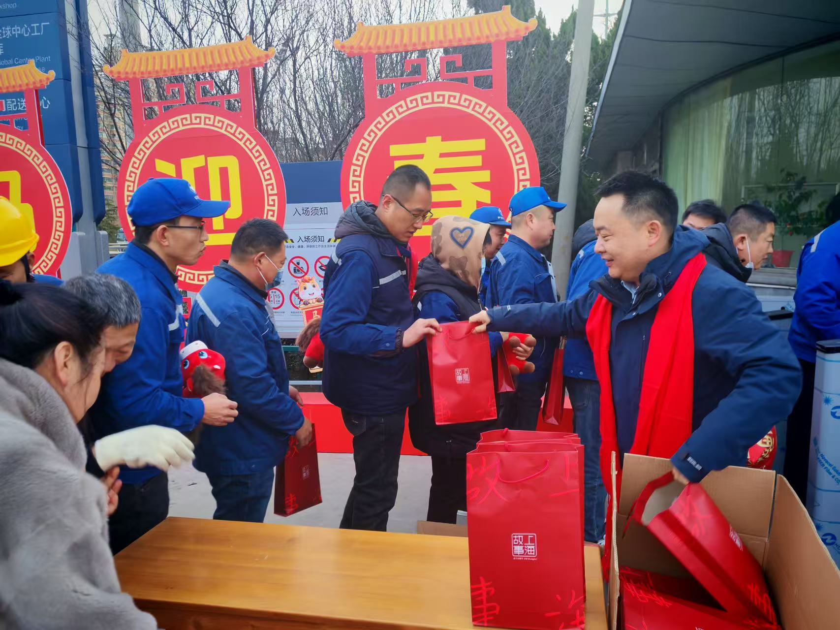 开工当天,企业精心开展“开门红”送福活动,工作人员将满载祝福的礼品逐一送到返岗员工手中,一句句“开工大吉”“马到成功”的问候,凝聚起全员奋进的强大合力。