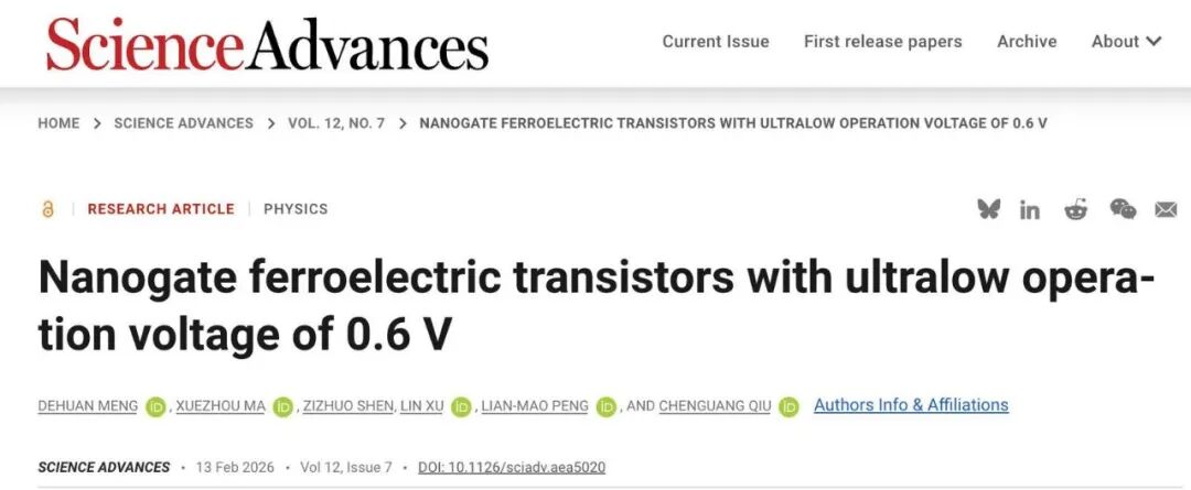 传统铁电晶体管存在能耗过高、逻辑电压不匹配等短板限制了其大规模应用。为此,北京大学邱晨光研究员—彭练矛院士团队,利用纳米栅极结构设计,巧妙解决了铁电材料“改变极化状态”需要高电压高能耗的问题。邱晨光表示,这一技术打破了传统铁电晶体管的物理限制,使得能耗比国际最好水平整整降低了一个数量级。