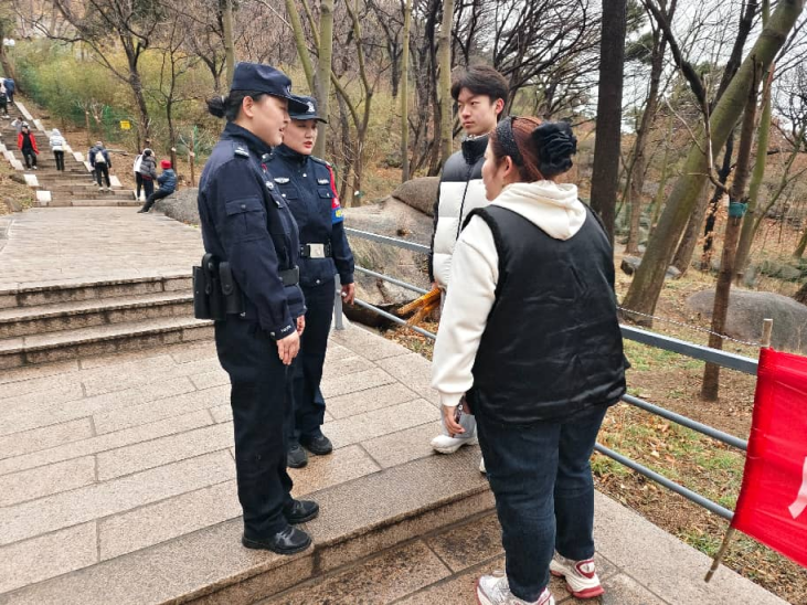 活动期间,女子中队民辅警提前抵达现场,针对民俗活动人员密集、人流量大的特点,科学部署警力,将工作重点聚焦安全巡查、秩序维护和服务群众等关键环节,通过采取定点值守与动态巡逻的方式,沿活动广场、登山步道开展巡逻巡查,及时疏导人流,提醒游客注意安全、文明游览,特别是对前来祈福的老人和儿童给予特别关照,耐心解答各类咨询,用柔性执法与贴心服务化解拥挤、消除隐患。
