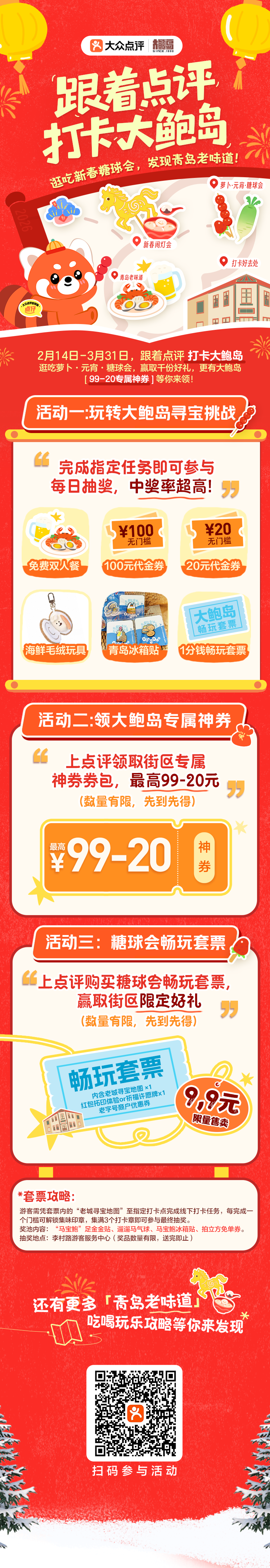 目前活动已正式上线,市民只需打开大众点评App,搜索关键词“大鲍岛糖球会”即可进入活动页面,查看详细规则并参与互动。这个春天,不妨叫上亲朋好友,一起走进大鲍岛,在烟火气中收获满满福礼,开启红红火火的新一年!