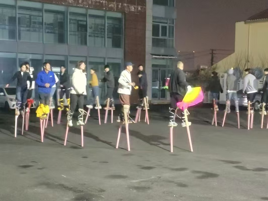 近日,北宅街道沟崖社区居委会大院里晚上经常灯火通明,社区高跷队队员们利用晚上的休息时间忙着排练,备战将于正月十五举行的崂山区2026年春节民间文艺汇演。