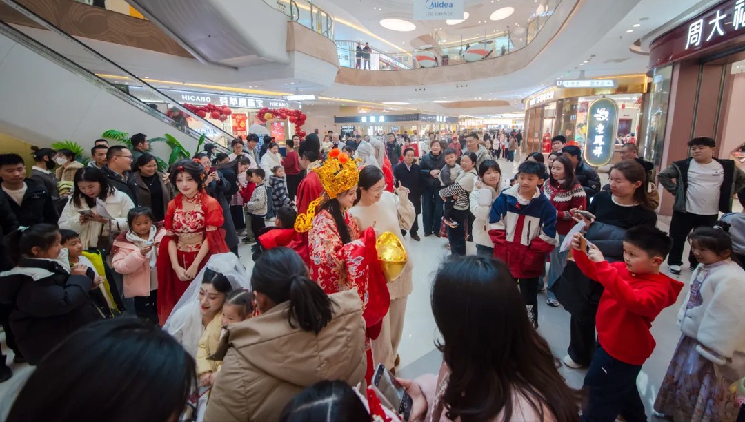 中心城区示范引领作用凸显。兰山区统筹重点商贸流通企业,举办“迎新春·品年味”年货大集、“马到福盛 泰运长兴”等9场主题活动,重点商圈与品牌门店客流如潮、销售强劲,九州商业大厦、泰盛广场、金鹰家电商场等销售额分别同比增长12.37%、12%、30%。河东区组织吾悦广场、知春湖温泉酒店等240家商户,开展“年货加马超值团购”“暖泉迎新年 温泉门票优惠”等10场促销活动,其中吾悦广场打造“年味里的市集”,推出NPC巡游、舞狮等沉浸式活动,叠加450元团650元等优惠,日均客流同比提升11%,营造出热闹祥和的消费氛围。