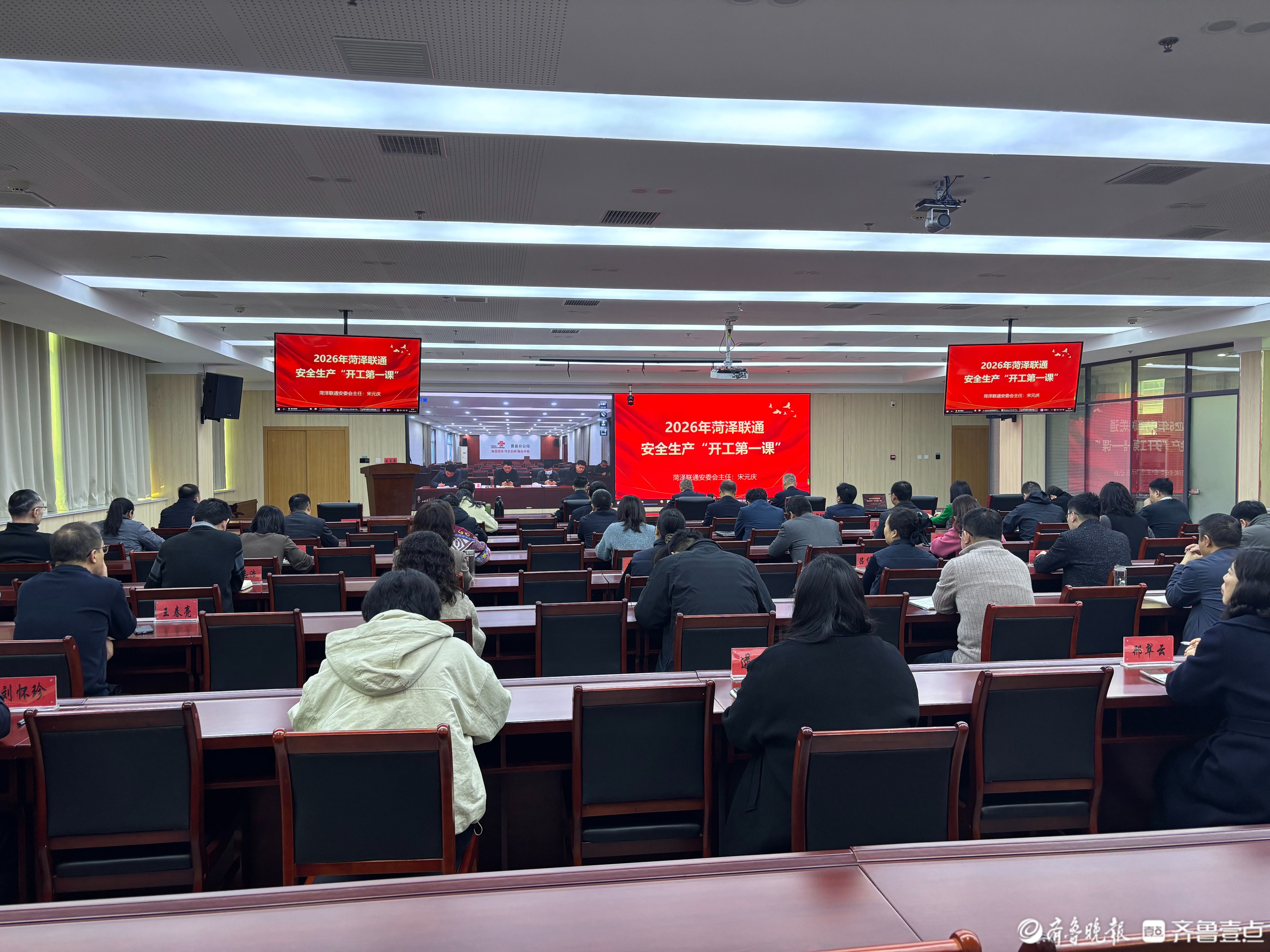 新春伊始,复工复产正当时。为严格落实上级“不开课不复工、不上课不上岗”的刚性要求,切实做好2026年复工复产安全生产工作,菏泽联通组织召开安全生产开工第一课专题会议,公司全体管理人员参会,党委书记、总经理宋元庆作专题授课,为全年安全生产工作划定重点、明确要求、压实责任,推动安全生产理念入脑入心,为企业高质量发展筑牢安全底线。