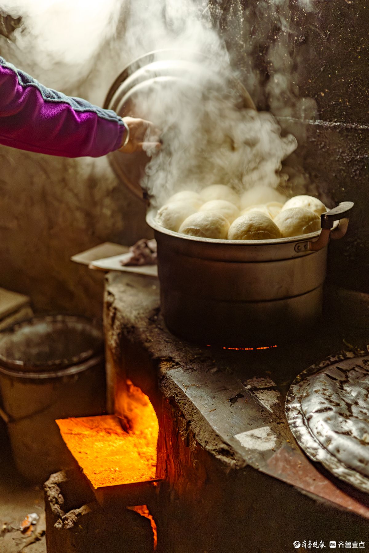 2月15日,除夕前夜的温暖来自妈妈蒸得一锅大白馒头,白白胖胖的馒头象征着“蒸蒸日上”。在小屋柴火灶上蒸着热气腾腾的大白馒头,烟火气息满满。张晓强摄