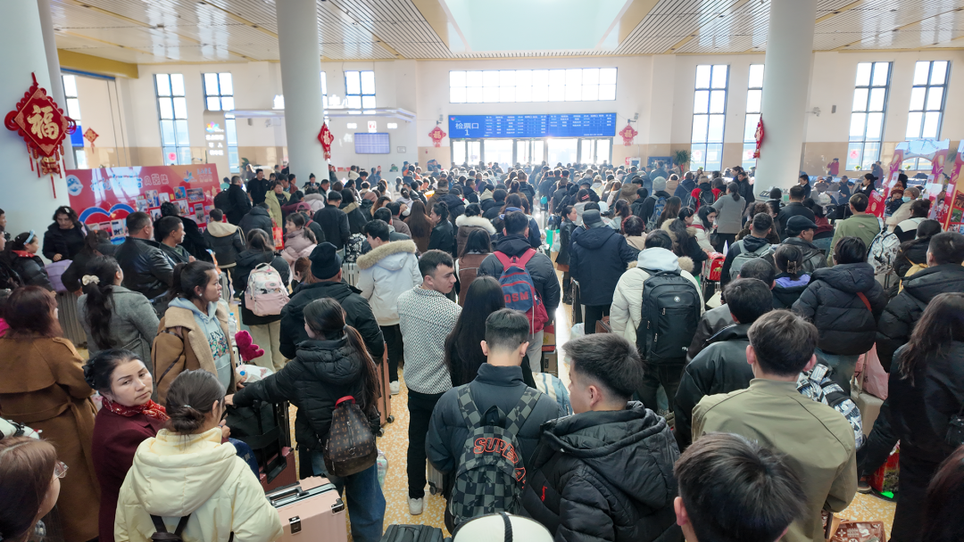 2月24日上午11时,喀什火车站内一派繁忙。工作人员穿梭在人群中,耐心解答旅客问询,引导旅客有序出行。候车大厅人头攒动,进站、安检、检票各环节高效运转,旅客们自觉排队、安静候车。电子屏实时滚动更新车次信息,前往乌鲁木齐的K6744次列车正在有序检票,旅客们携带行李、怀揣期盼,从容踏上归途。