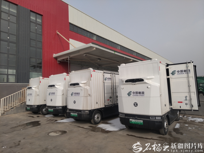 中国邮政集团有限公司喀什地区分公司二级邮区中心的4辆无人快递车。徐强 摄