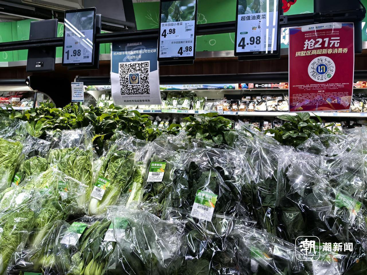 2月24日是节后第一个工作日,随着假期的结束,杭州人的“菜篮子”开始变“轻”了。潮新闻记者实地走访发现,杭州多家农贸市场和商超的蔬菜价格较春节期间明显回落,部分品种每斤价格降幅超7元。