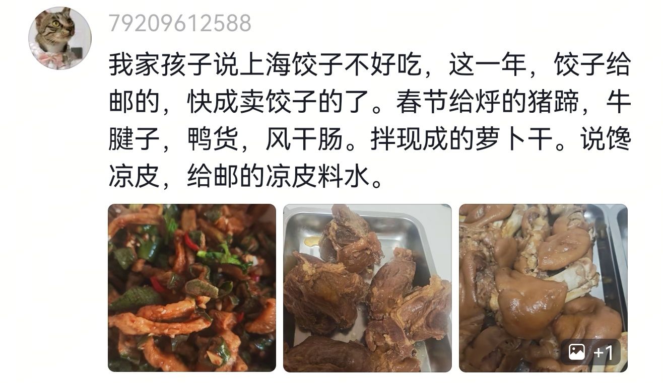 也有来自黑龙江大庆的网友表示,自己每年都给在杭州的女儿寄饺子:“我在最冷的时候邮了几百个饺子几百个馄饨。”