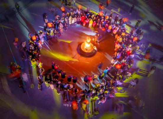 每晚的篝火打歌环节更是将现场氛围推向高潮,游客与演员手拉手围着篝火载歌载舞,在欢声笑语中感受最地道的新春烟火气。