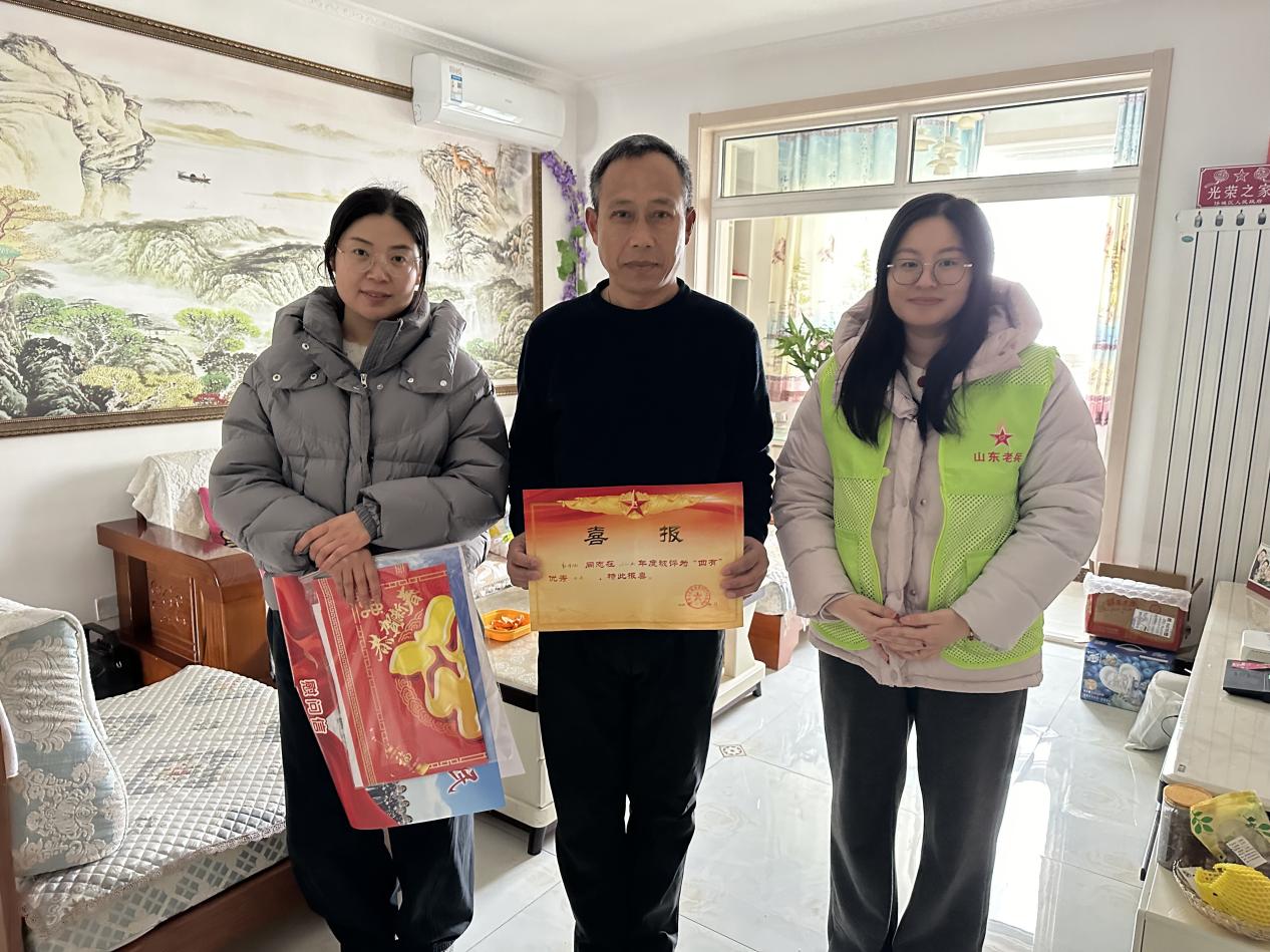 近日,现役军人郭泽旭在部队表现突出,被评为“四有”优秀士兵,荣誉喜报传回家乡。水韵城社区退役军人服务站和网格员专程前往郭泽旭家中,将这份承载着荣誉的喜报送到其家人手中,并送上新春的问候与祝福。