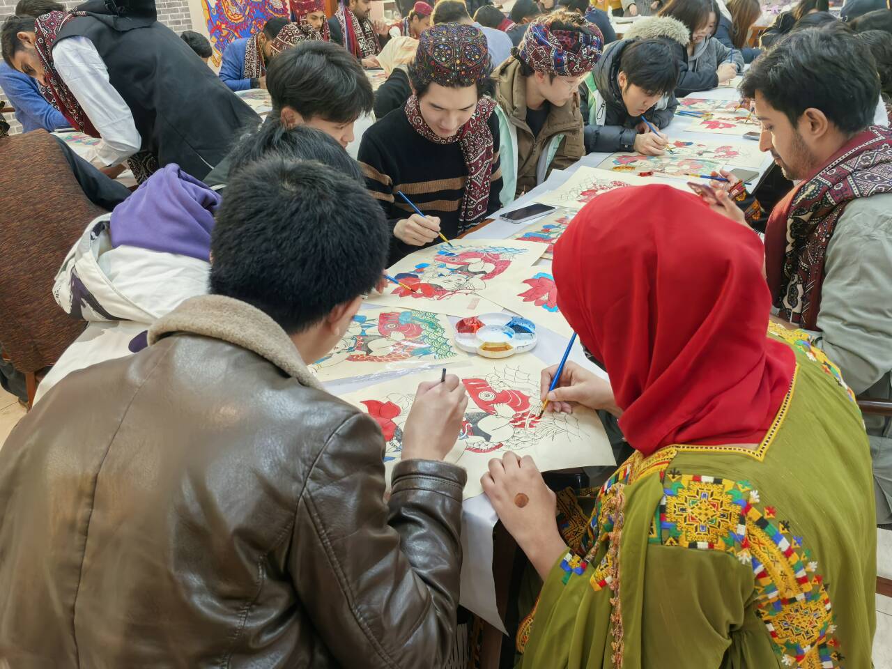 活动开始,代表性传承人张运祥率先为留学生们讲述了潍坊安丘木版年画的基本特点以及象征的美好寓意。在博物馆工作人员与志愿者的协助下,留学生们纷纷体验了年画的绘制与印刷过程。来自巴基斯坦的留学生还主动跟志愿者们分享了自己国家的文化习俗,气氛到达顶点,留学生和志愿者们一起载歌载舞,欢庆新春。