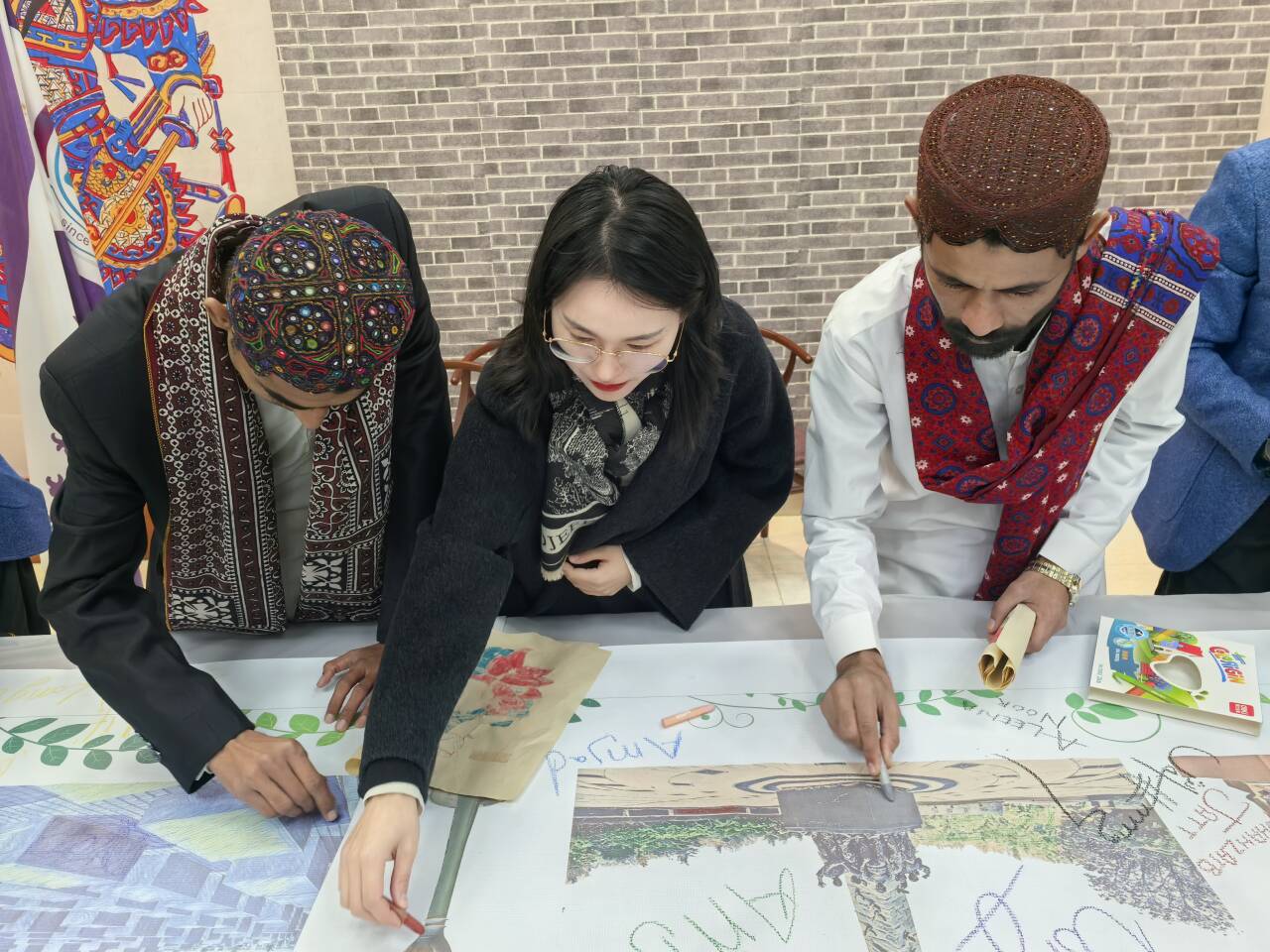 随后,山东省文物修复师、潍坊传拓技艺非遗代表性传承人张志亮带着自己以“和平”为主题的一系列传拓作品“登场”。手把手教授留学生传拓技艺的精髓,将和平文化与潍坊传统文化紧密结合,在留学生的心里留下了深刻的印象。“值此新春佳节,我与博物馆的工作人员一起走进校园,让留学生们体验我们潍坊的非遗传拓技艺,向他们展示了我们中华优秀传统文化。”张志亮说,举办这样的文化活动,有助于让更多人知道潍坊的传统技艺,也有助于让潍坊的文化走向更多地方。
