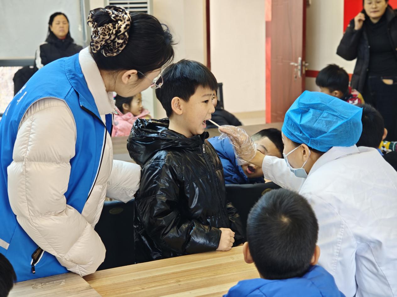 课堂一改传统讲座模式,专门针对儿童特点设计。社区网格员与志愿者通过播放活泼有趣的护牙动画短片,瞬间吸引了孩子们的注意力。随后,在专业卫生服务站医生的引导下,孩子们借助特大牙齿模型,直观地了解了牙齿的构造和蛀牙的形成过程。医生用充满童趣的语言,讲解了早晚刷牙、健康饮食少吃甜食、定期进行口腔检查的重要性。此外,课堂上还设置了“食物牙齿分类”“护牙知识小问答”等互动游戏,孩子们在轻松愉快的游戏中巩固了所学知识。