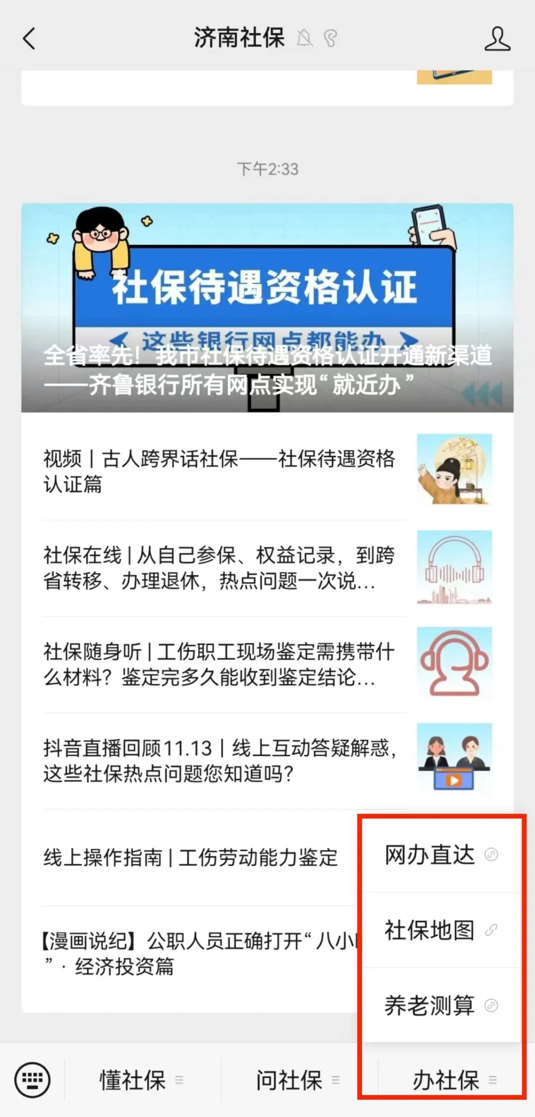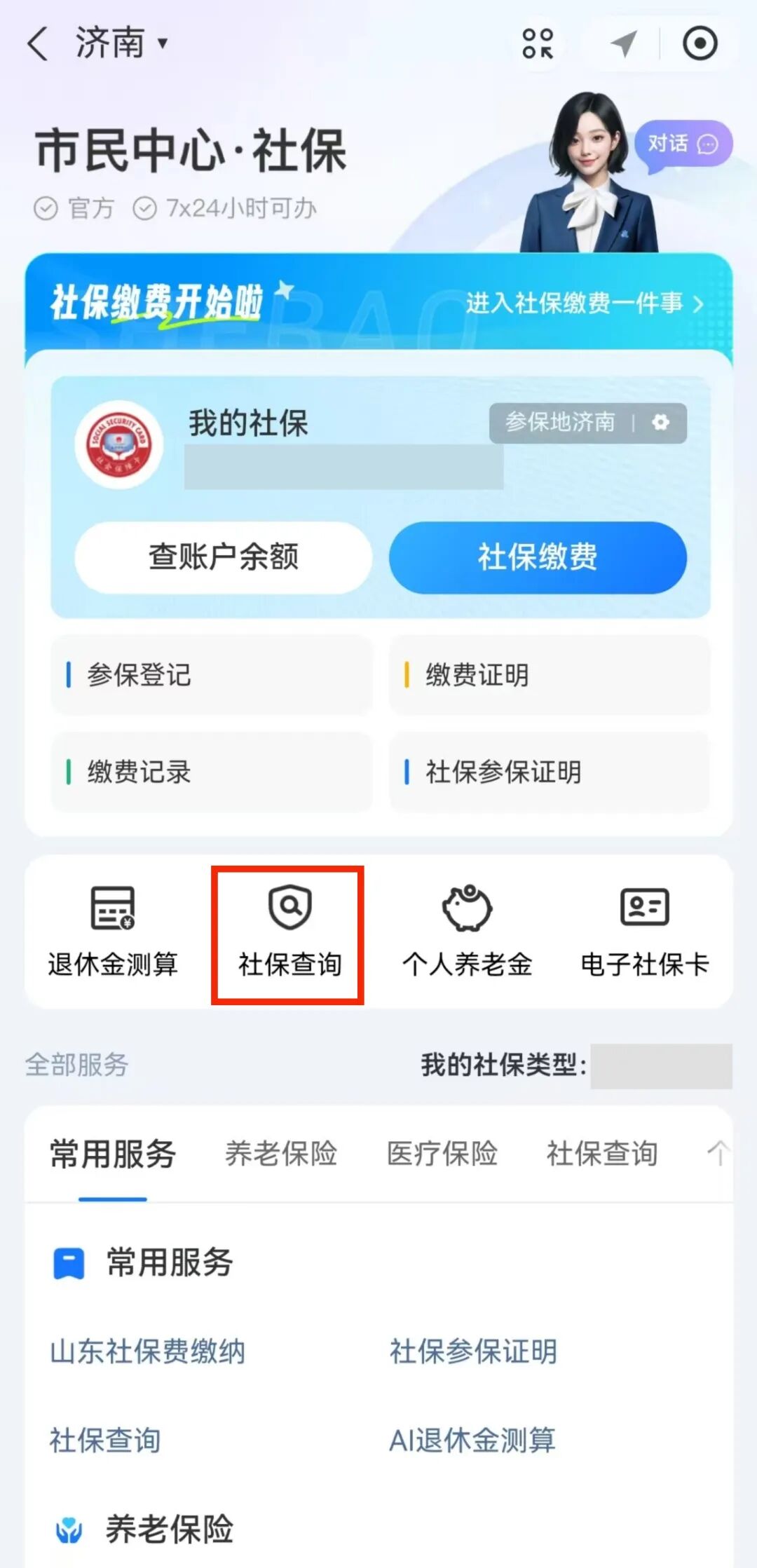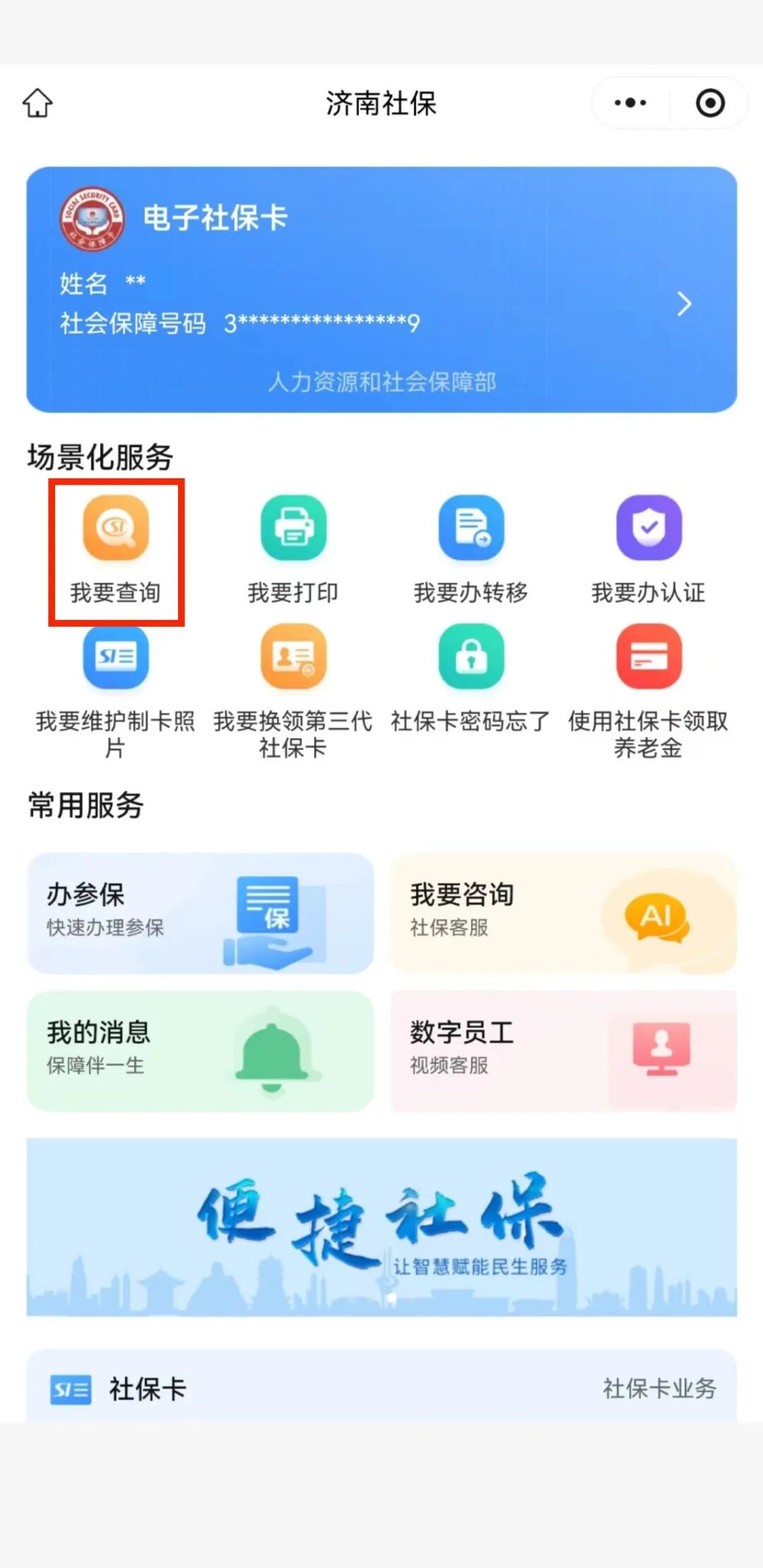(1)“济南社保”微信公众号—“办社保”—“网办直达”—“我要查询”