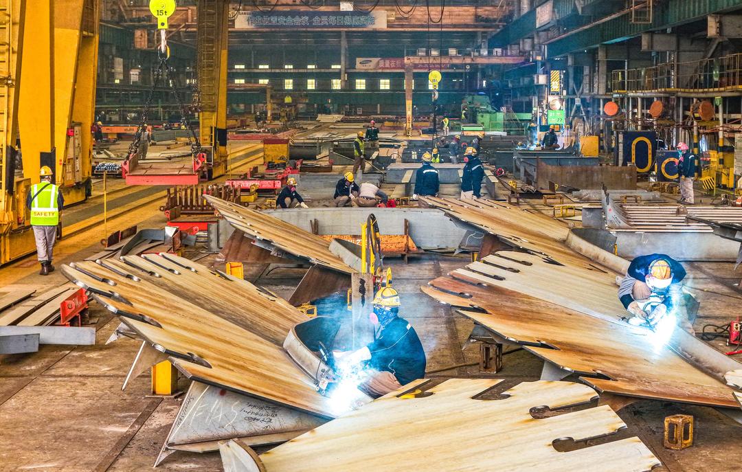 2月24日,在位于荣成市石岛管理器的华东修造船公司和位于俚岛镇的三星重工业(荣成)有限公司生产车间,工人们满负荷生产。近年来,荣成市积极推动船舶修造与海工装备产业快速发展,加大产品结构优化升级和优质海工资源盘活力度,强化产业链合作,带动修造船企进行技术创新,增强市场竞争能力。(李钟芸李信君)