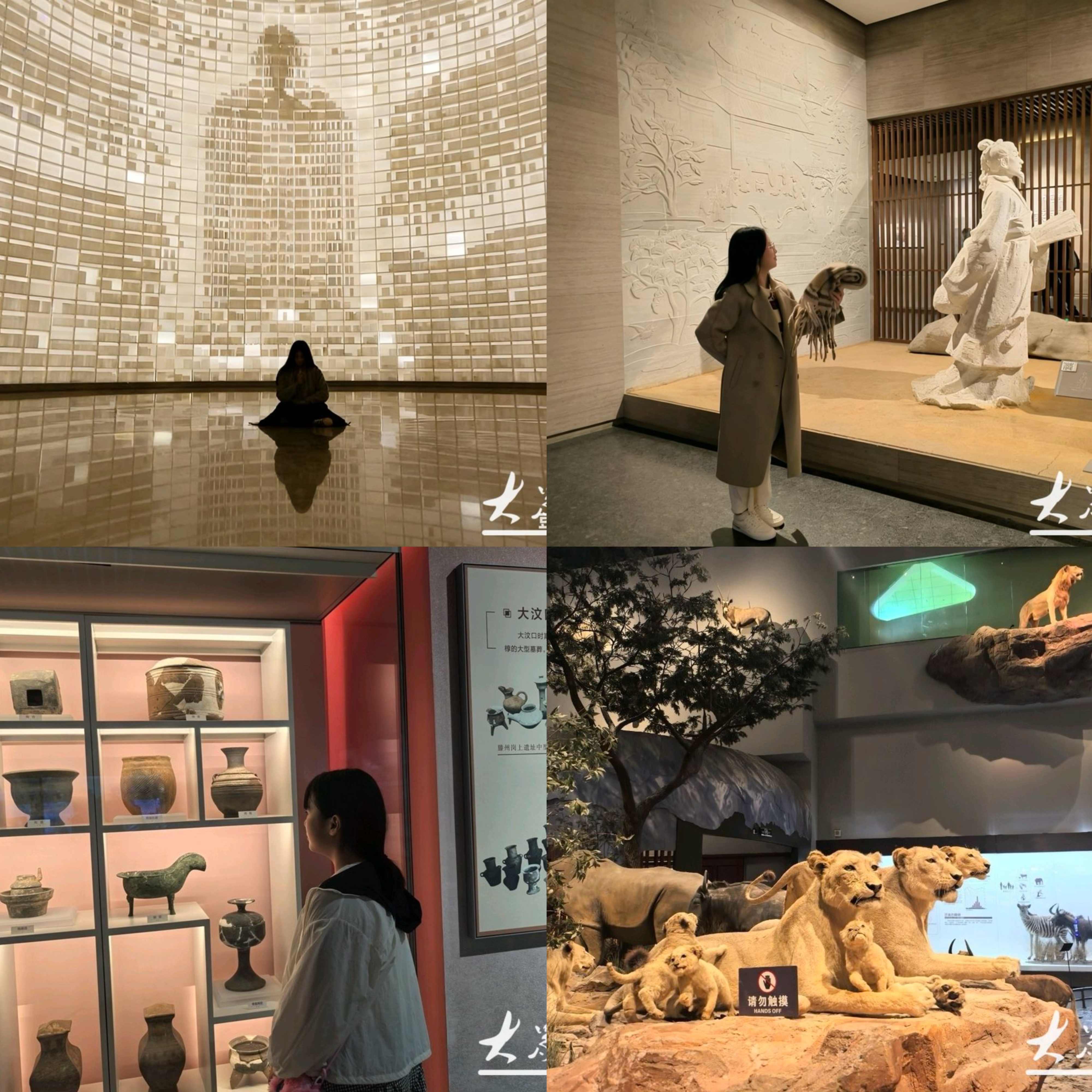 在孔子博物馆,一名女生站在立像前,轻轻将围巾搭在臂弯,模仿着先师侧身远望、持卷传道的姿态。衣袂翩然间,她与两千五百年前的孔子完成了一场无声的“隔空对影”。身旁的电子长卷上,青绿山水缓缓流淌,数字光影复刻出周游列国的车辙与城郭。如果说孔子博物馆是一场与圣贤的精神握手,那么山东省博物馆则是一次对齐鲁文明的系统解码。从“非洲野生动物大迁徙”展厅的生命律动,到“山东历史文化展”中大汶口彩陶、商周青铜的岁月留痕,队员们分工记录、热烈讨论,试图从陶器的纹路和礼器的形制中,梳理出文明起源的连续性。在“山东抗日战争主题展”的泛黄照片前,他们久久驻足,与讲解员深入交流,在电报手稿与战地日记里,触摸到红色文化的温度。